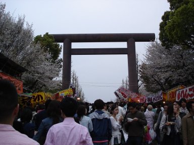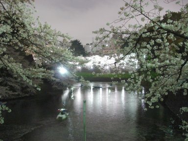 対岸の靖國の桜が光っているように見えます。4時間くらい歩き回ったところで花見終了!