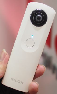 魚眼レンズが表と裏にあって、一度に360°…というか4πステラジアンを撮影できるというものです。スマートフォンの専用アプリで好きな部分を切り出せます。補正の中心位置を好きに選べるので、今回のような不自然な角度にはなりません。欲しいなあ。